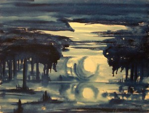 OCASO EN AZUL-Acuarela sobre lienzo-50×65