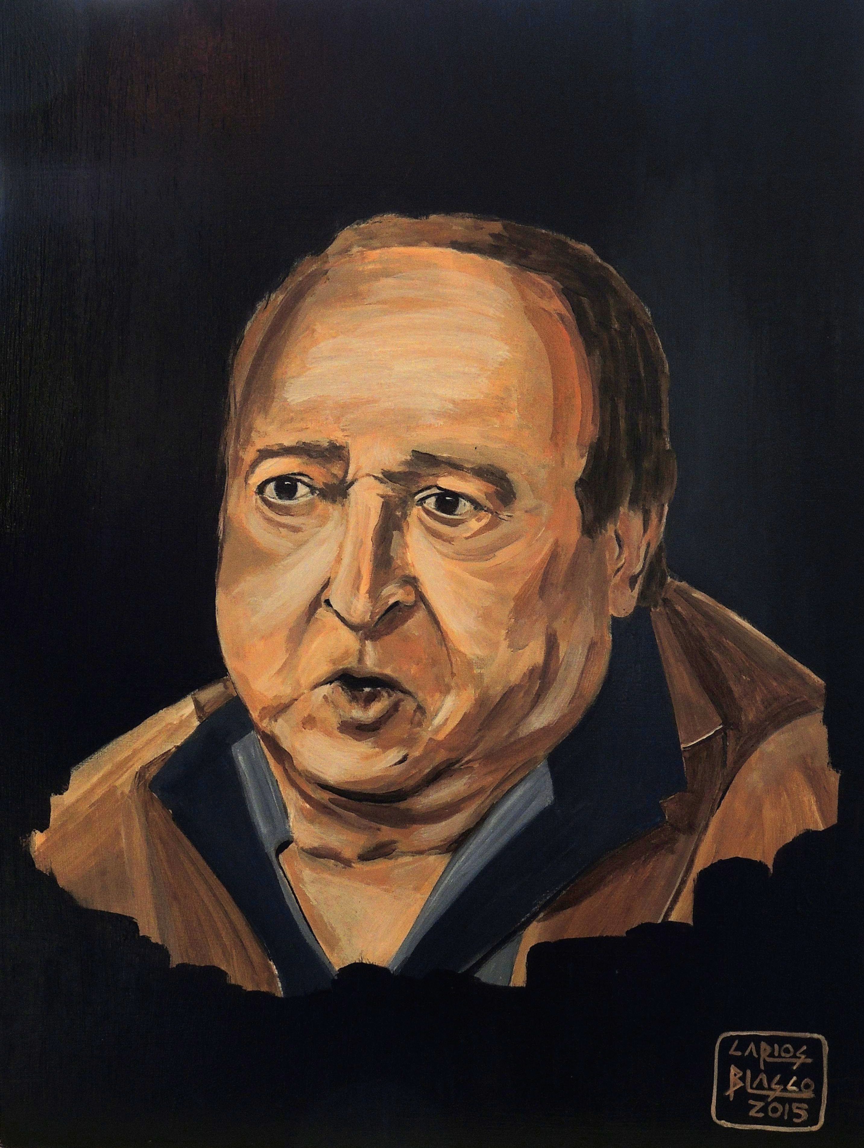 El acabado que en ocasiones aplico, contribuye (y ése es el propósito) a mantener cierta distancia con el personaje, de forma que, como si estuviera situado detrás de un cristal, permaneciera distante del observador, siendo mayor su sensación de intimidad , ajeno a quienes, desde fuera del cuadro, con la discreción del anonimato disfrutan, a la manera del voyer, con la mera contemplación, sorprendidos, a veces, por la inquisitoria y penetrante mirada del retratado. El autor, Carlos Blasco