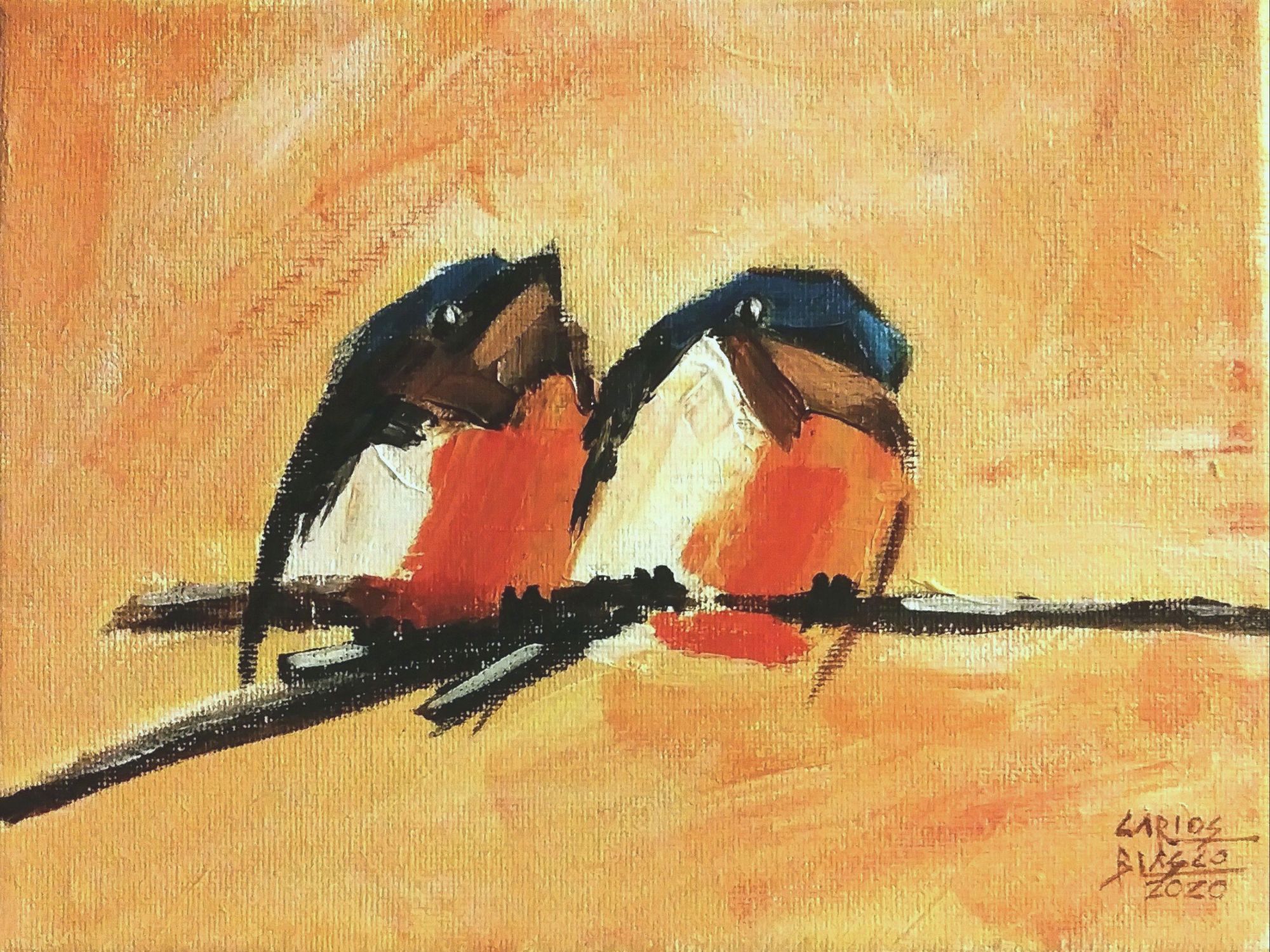 21 – De la serie “El baile de los pajaritos” Acrílico sobre lienzo. 24×18 cms.