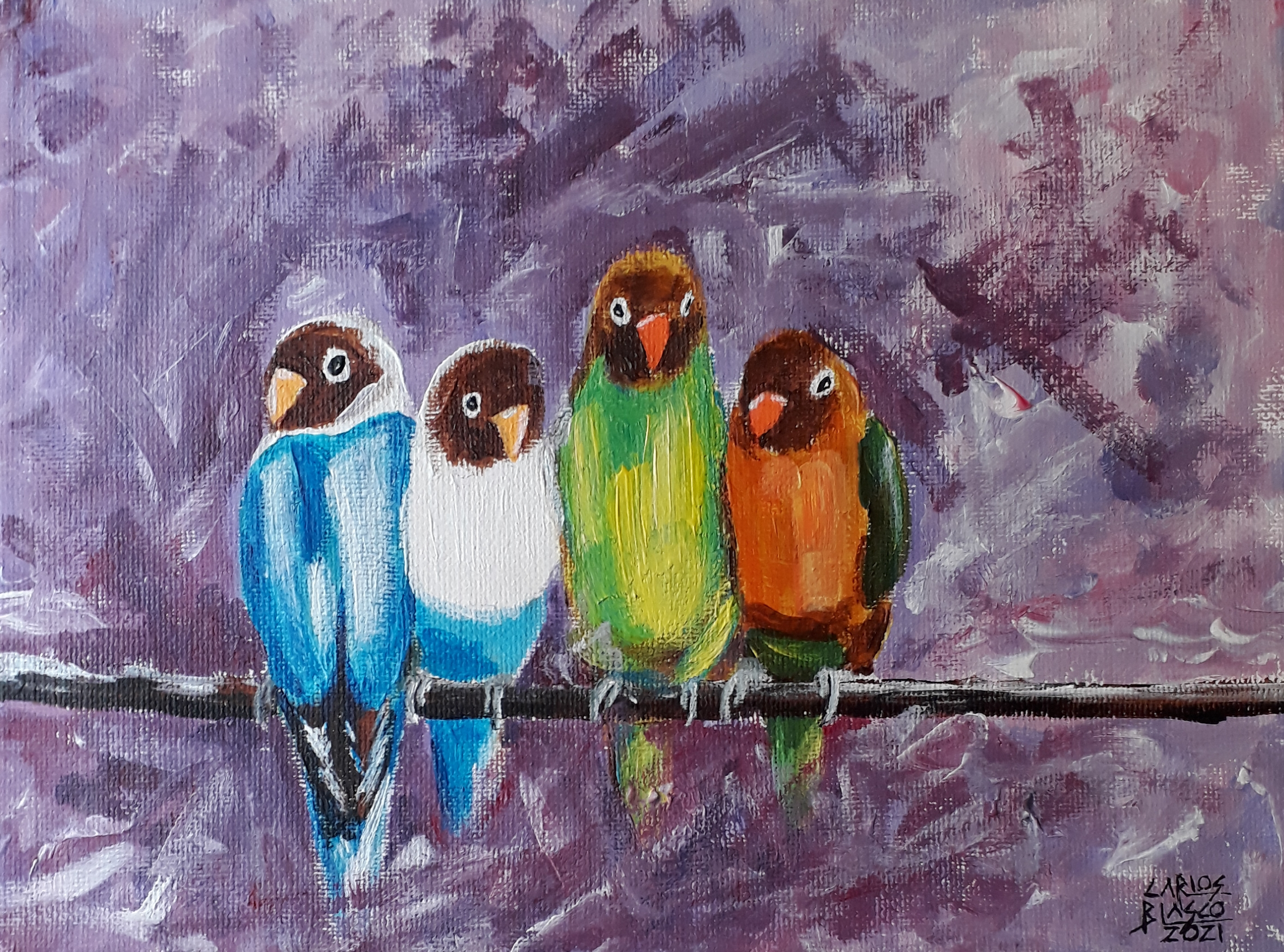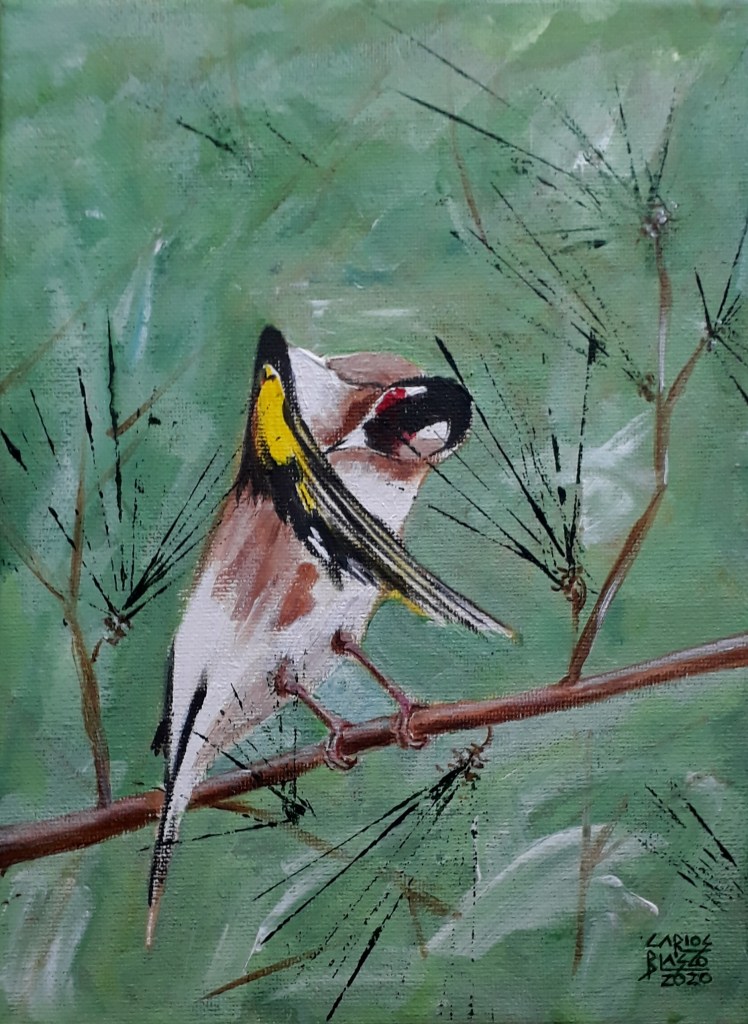24 – De la serie “El baile de los pajaritos” El quetzal-Acrílico sobre lienzo. 24×18 cms.25 – De la serie “El baile de los pajaritos” El vuelo del quetzal-Acrílico sobre lienzo. 24×18 cms.26 – De la serie “El baile de los pajaritos”-El aso del jilguero-Versionando a Chema Hernandez-Acrilico sobre lienzo-24×18 cms-27-De la serie “El baile de los pajaritos”-Acrilico sobre lienzo-18×24 cms.28 – De la serie “El baile de los pajaritos”-Acrílico sobre cartón pluma. 20×15 cms.