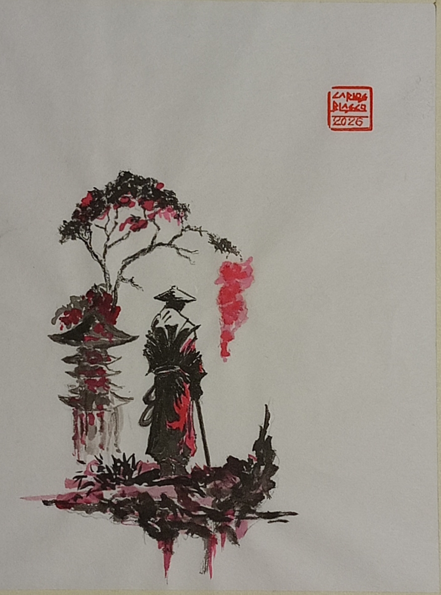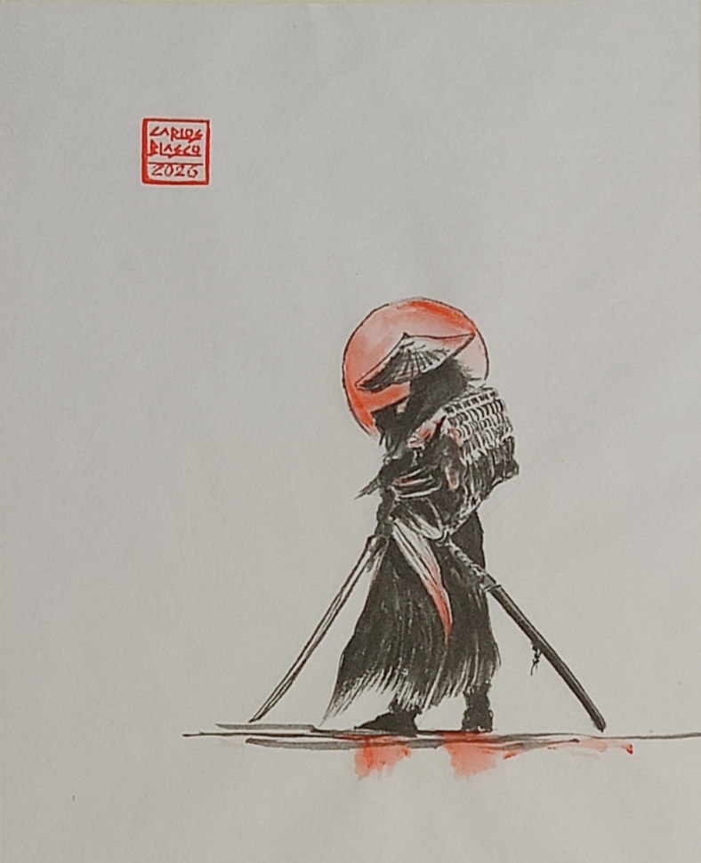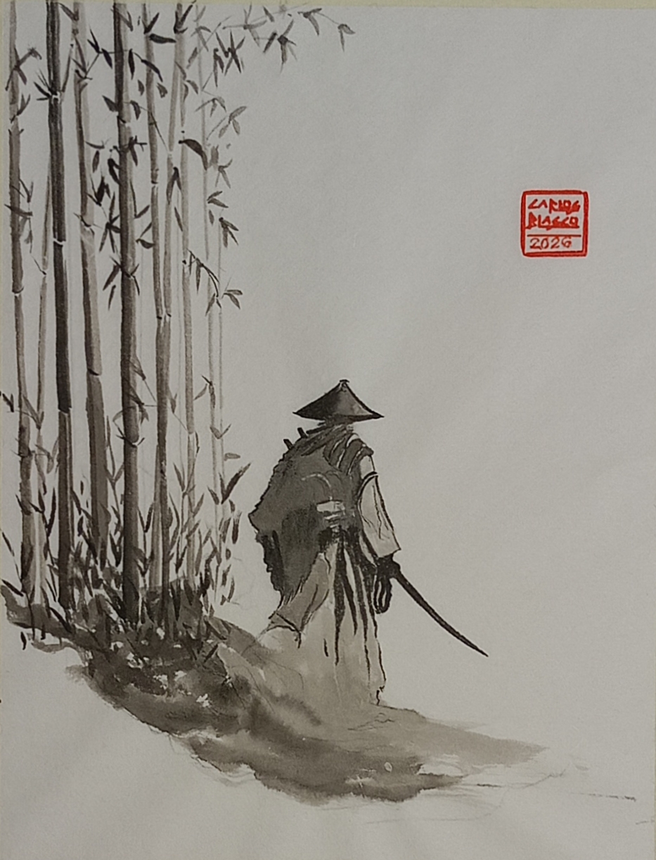 17-EL CAMINO DEL SAMURAI-Tinta china sobre papel japonés32x23,5 cms., montado sobre cartulinas, sin encolar