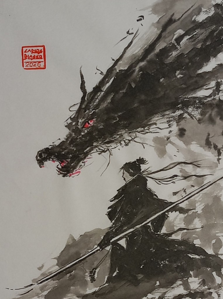 56- SAMURAI-8- Tinta china sobre papel japonés- 27×21 cms.
