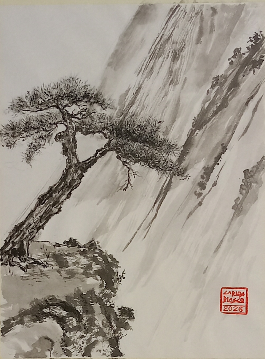 44-BONSAI-1- Sumi-e. Tinta china sobre papel japonés. 28 x 22 cms.