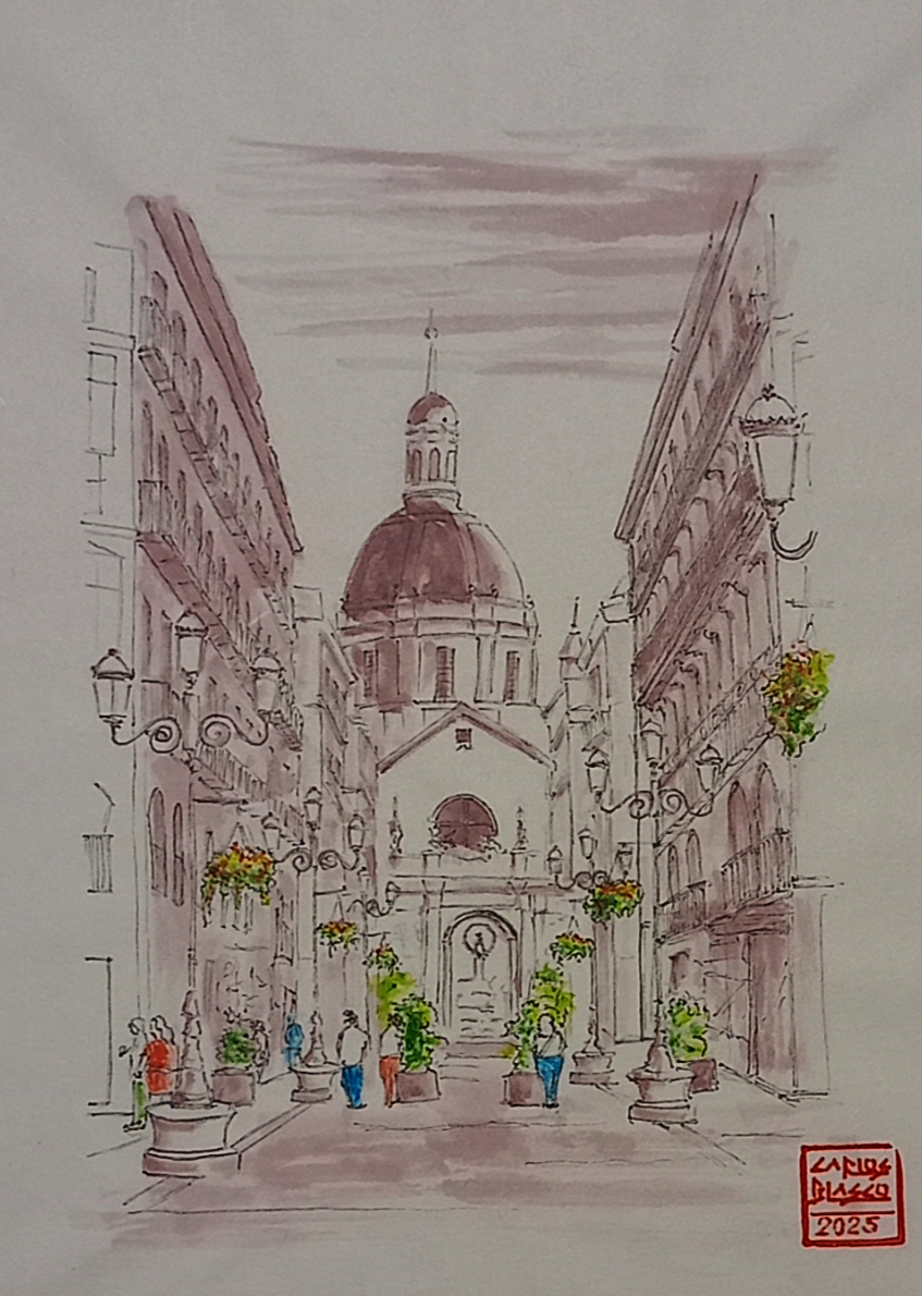 49- CALLE ALFONSO, Zaragoza-Tinta china sobre papel japonés. 27×21 cms.