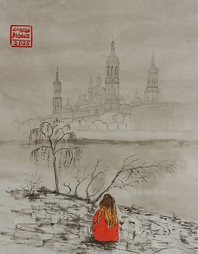 50- BASÍLICA DEL PILAR, Zaragoza- TINTA CHINA SOBRE PAPEL JAPONÉS-27X21 CMS.